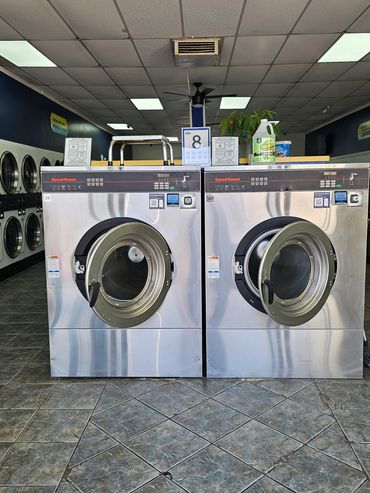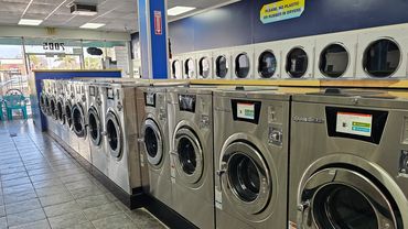 At Bell's Best Laundry, we offer a modern and convenient self-service laundromat experience. Our 28 brand new touch screen washers and 2 80lb washers are perfect for handling all your laundry needs, from small loads to heavy-duty washes. Enjoy our new soda, snack, and filtered water vending machine, as well as our laundry vending machine, for a complete and comfortable laundry day.
